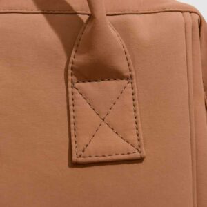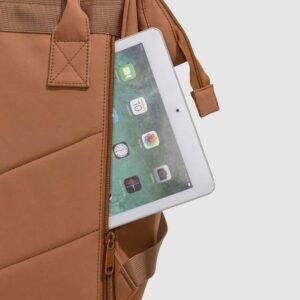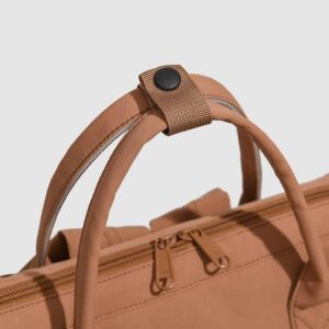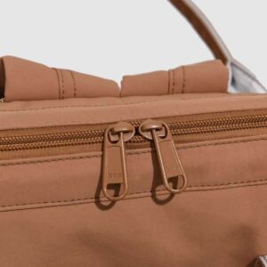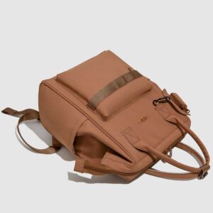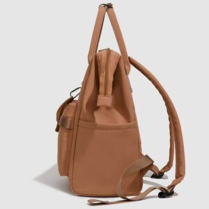 这款包采用塔丝隆复合面料制成,可双肩背、单肩背或单肩背。它是一款大容量妈妈包,拥有多个隔层口袋,科学分区设计,可收纳宝宝生活用品、旅行用品等,并有六种颜色可选。这款包的尺寸约为高39厘米、宽27厘米、厚17厘米,重量约为0.54公斤。