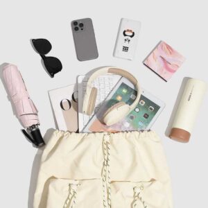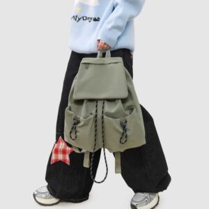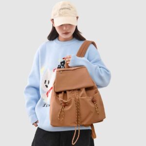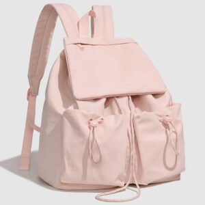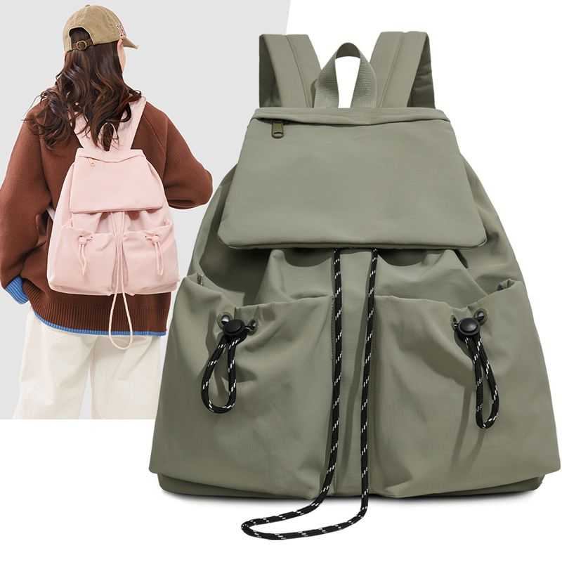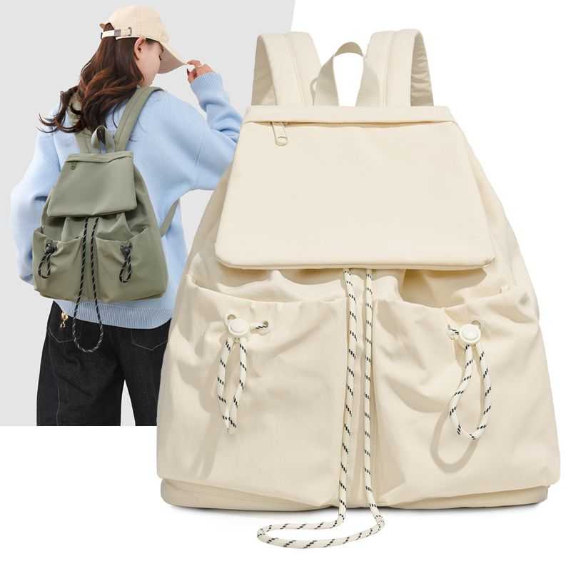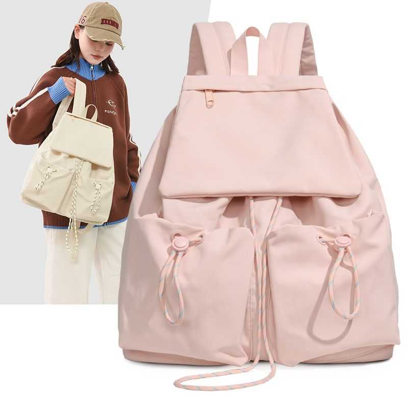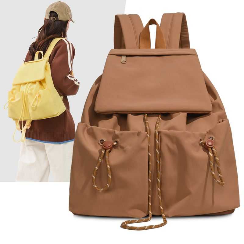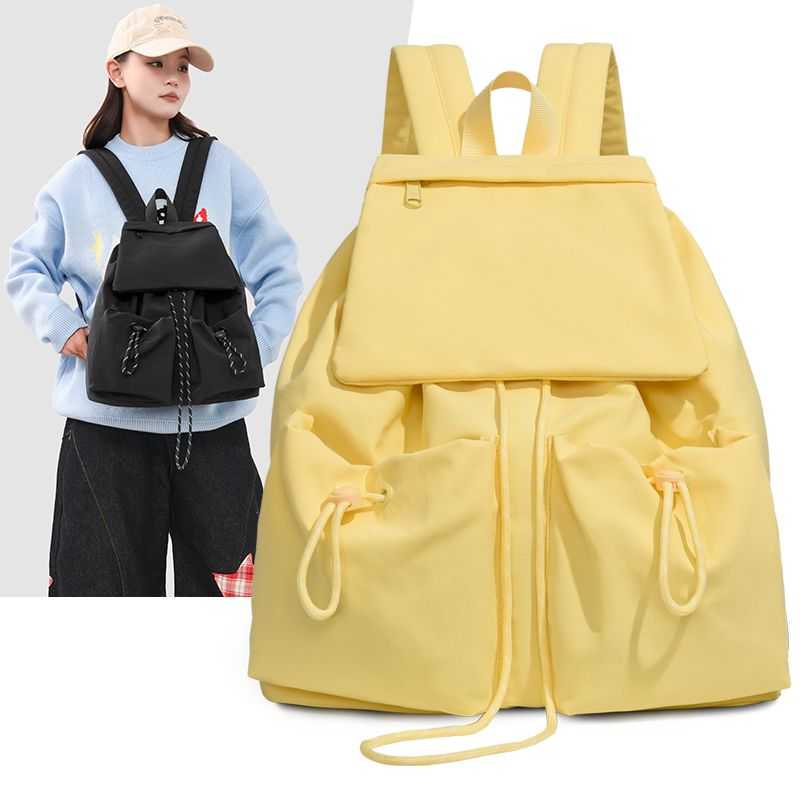 这款女士背包采用牛津布面料,抽绳设计。多个隔层可收纳日常必需品,共有六种颜色可选。规格尺寸约为高38厘米、宽26厘米、厚17厘米,重量约为0.39公斤。